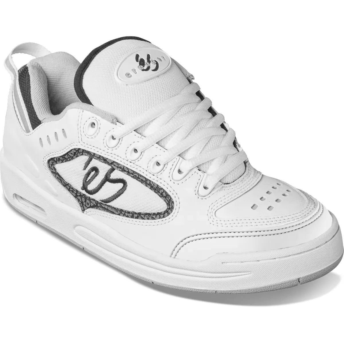 Der éS Creager Skate Schuh in Weiß ist ein Klassiker aus den späten 1990er Jahren, der nun in einer Neuauflage erhältlich ist. Dieser Schuh kombiniert Retro-Design mit moderner Technologie und ist sowohl für Skateboarder als auch für Sneaker-Enthusiasten ein Highlight.